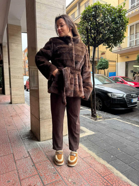 Veste fino una XL Bottone a clip gioiello Collo alto Modello Vis0ne Cintura compresa Tasche...