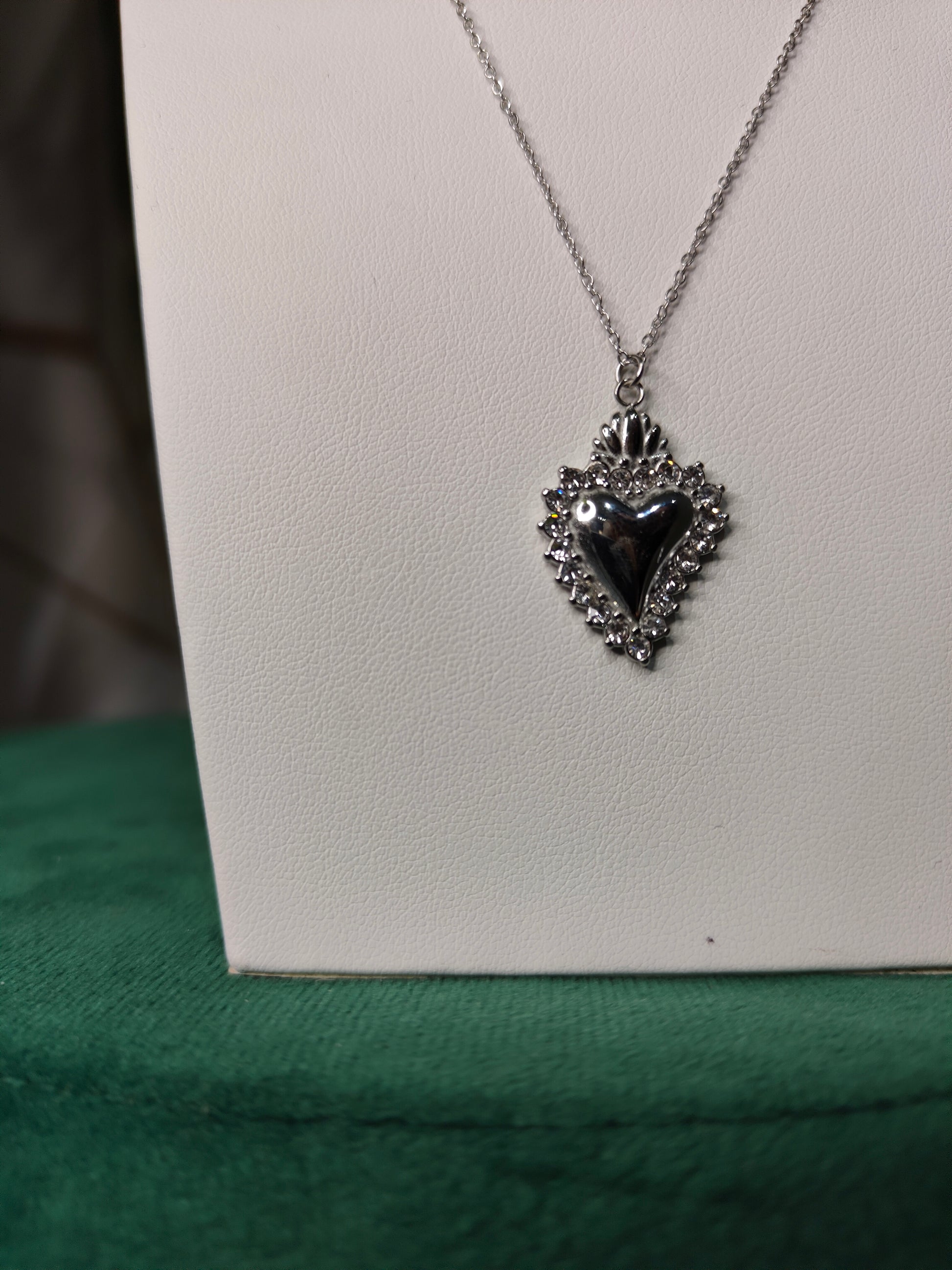 Collana Cuore Sacro e Strass Silver