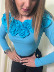 Maglia costine Azzurro con balza rouchata