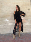 Pareo/cardigan ricamato in nero